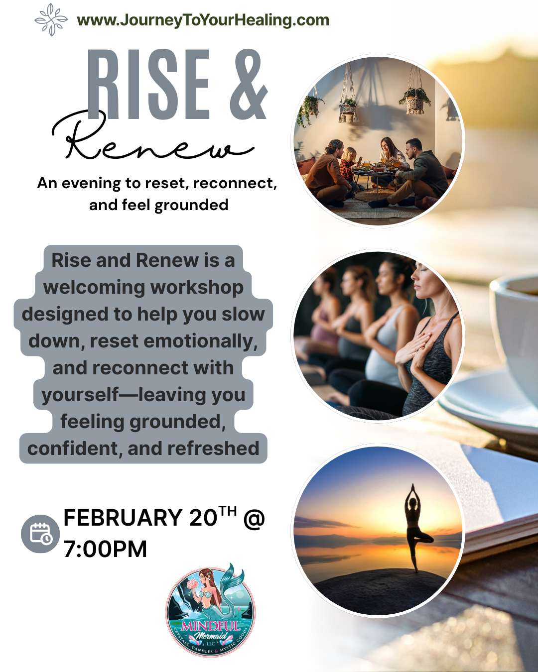 Join us for Rise and Renew, a transformative in-person workshop designed to help you reconnect with yourself, rebuild trust, and step into emotional renewal. This sacred space invites you to pause, reflect, and gently release what no longer serves you.