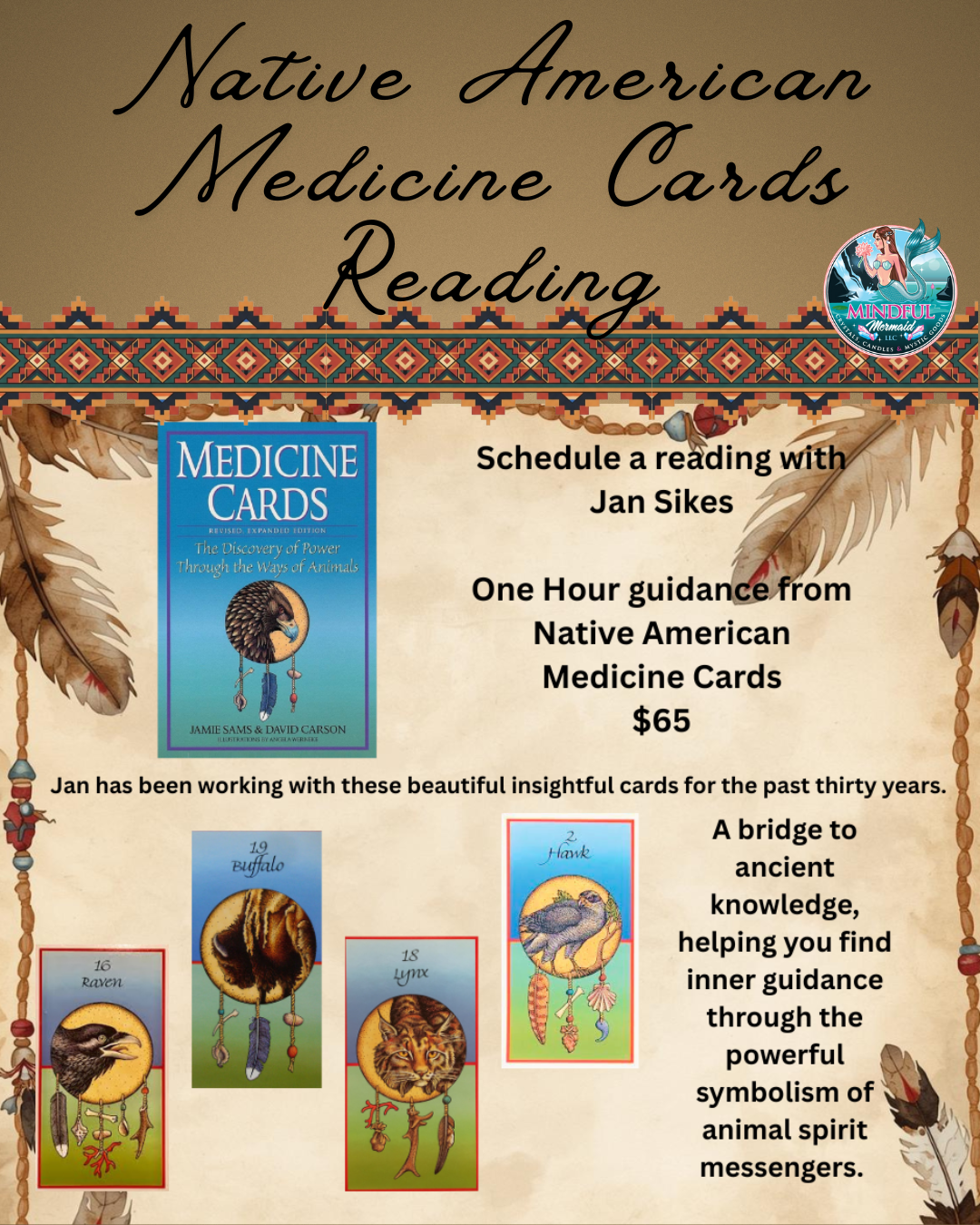 This personal reading offers intuitive guidance through the wisdom of the Native American Medicine Cards. Drawing on over thirty years of experience with these powerful and insightful cards, Jan Sikes provides a grounded, heart-centered session designed to support clarity, reflection, and inner guidance.